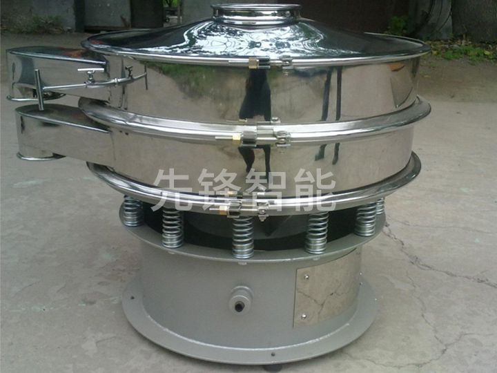 本機由料斗、振蕩室、聯軸器、機電構成。振蕩室內有偏疼輪、橡膠軟墊、主軸、軸承等構成.可調理的偏疼重錘經馬達驅動傳到達主軸中間線,在均衡狀況下,發生向心力,使物料強度轉變在篩內構成軌道漩渦。重錘調理器的振幅巨細可按照差別物料和篩網停止調劑。